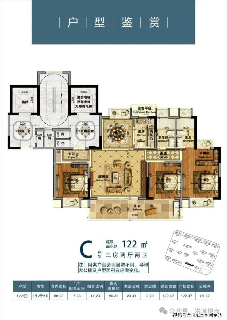 建面约122㎡洋房户型: