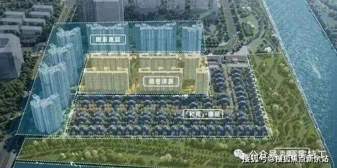 项目由7栋高层住宅、6栋洋房和低密度合院组成,向270°滨河景观开放,层层递进,形成前低后高、玉带环腰的风水格局,保证每户的良好采光和景观朝向。