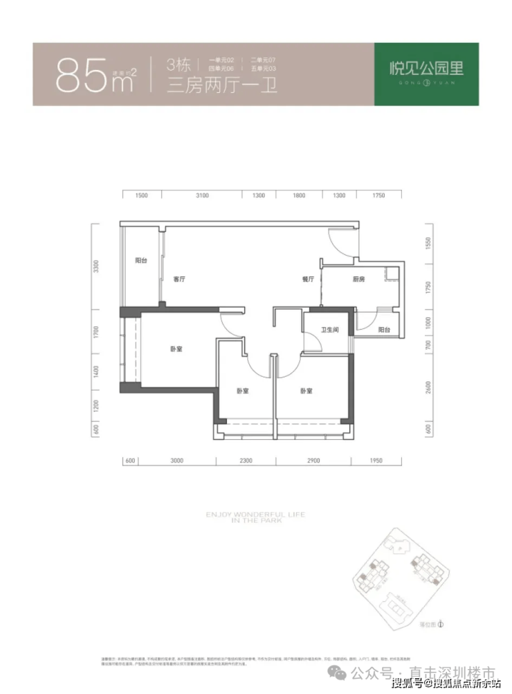 85㎡的3房2厅1卫,设计的是竖厅格局,客厅3.3米开间,LDKB一体化设计,3个卧室分别做到了主卧10.97㎡/次卧8.24㎡/次卧6.7㎡(实测面积,去掉墙体),L型厨房带1个生活阳台,卫生间三段式分离,得房率73.72%(不含赠送),西北或东南朝向。