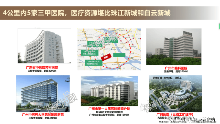 4公里内5所三甲医院,崇文二路侧广钢医院正升级改造为拥有1200张床位的甲级医院;临近广州国际医药港,坐拥千亿级别大健康产业集聚平台。