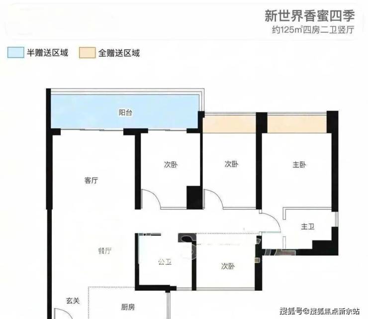 建筑面积约125㎡4房2卫,竖厅设计,空间布局较为合理。