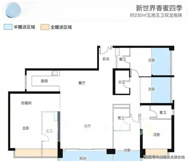 建筑面积约230㎡5房5卫,3梯3户,朝向西南。