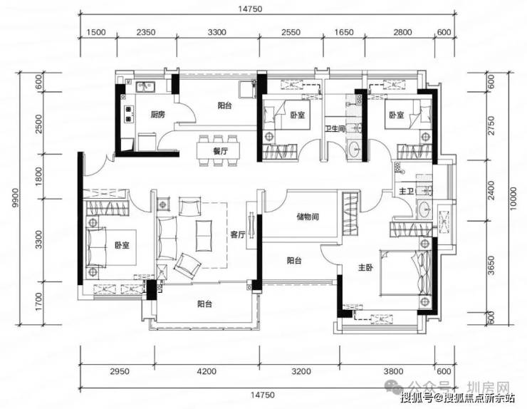 89㎡四房两厅两卫,同等面积多一间房,二孩家庭也能三代同堂。