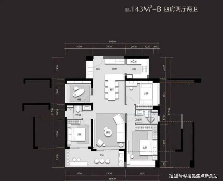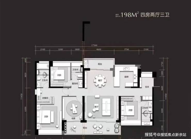 以建面约300㎡的宽幕大平层为例,景观视野全小区最佳,是高端圈层的首选户型。