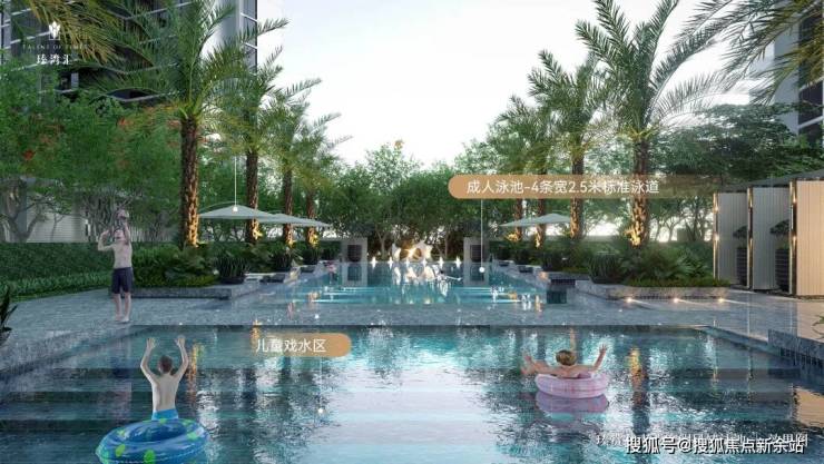 瑧湾汇的泳池设计,以对标泰国曼谷四季度假酒店为灵感,不出小区,便能感受到满满的东南亚度假风情。