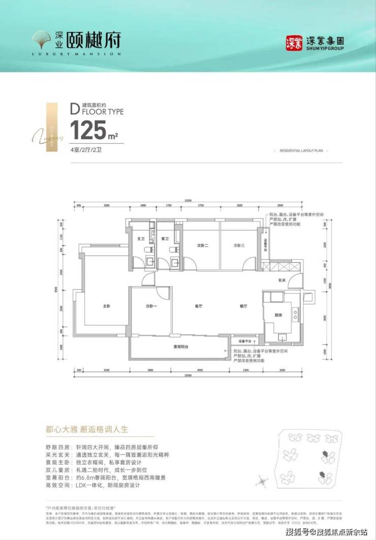 项目钜献建面约95-125m²颐系力作,建面约128-179m²云端复式,主流三至四房户型,格局方正采光通透,宽景阳台揽胜云端,栖居一府天地,私享一方静界。