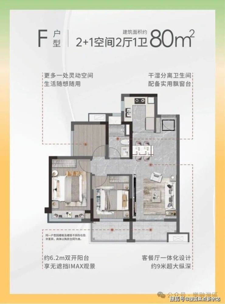 建面約80-162㎡創變三至四房,南北通透格局