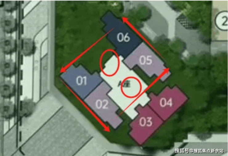 但是问题是02VS05户型,01VS06户型入户门几乎是对着开门,换句话说,你要是家里开门,对面家庭一眼就能看见客厅全貌,这样隐私性就会差些,设计上,设计师还是把采光作为优先级处理了。