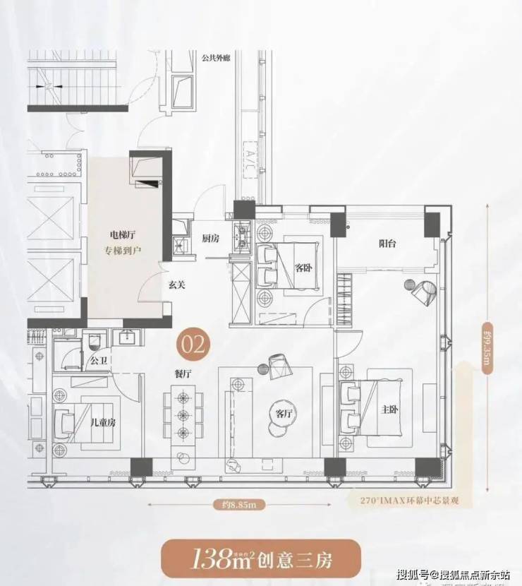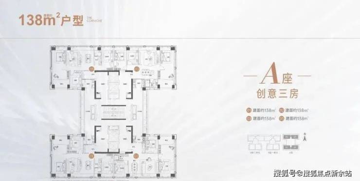 项目主打户型138㎡百变空间。(基本没有承重墙,内部可以按需求自由改造)