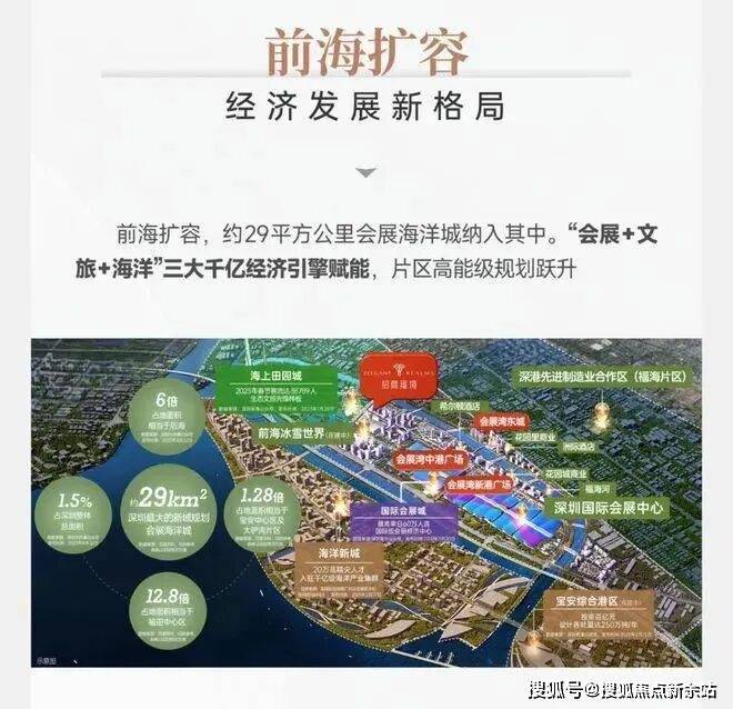 约29平方公里会展新城,湾区战略制高点,会展新城规划布局为“三城一港”,包括国际会展城、海洋新城、会展田园城和综合港区,将成为深圳在全球科技创新中心和海洋中心城市地位的重要战略支撑。