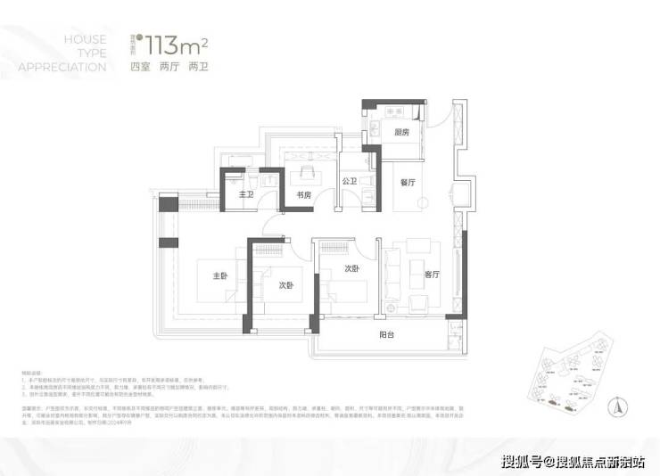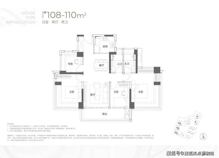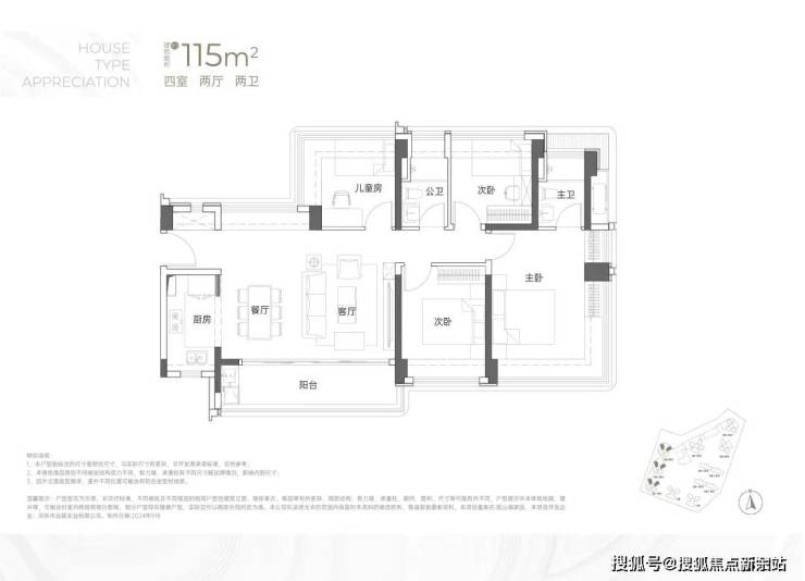 竖庭格局,西南向,基本居住功能与建面约108-110㎡4房2卫一致,但格局不一样,从目前公布的户型图上看,主要是主卧空间有了更大的提升,比如可以放更大一点的衣柜。但从位置上看,它所在的楼栋更靠近主干道,会有噪音影响。