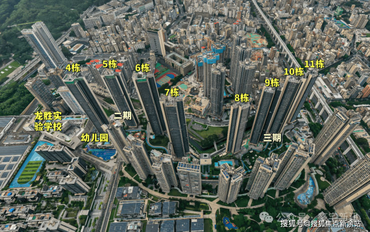 深铁珑境2/3期,占地5.7万㎡,总建面35.34万㎡,容积率4.66,绿化率30.01%。由8栋超高层住宅组成:4栋52F商品房,5栋51F人才房,6、7、9、10栋各55F商品房,8、11栋各49F商品房。二三期园林和地下室互通。
