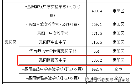 据惠州教育局资料显示,惠阳五中2020年高中录取分数排名前五名,录取线为505.2分,是惠阳优质教育资源的学校,深受学子及其父母信赖。