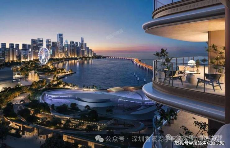 观潮府的占位,定义了它的稀缺与高度。项目坐落于宝安中心区新安街道,与繁华的欢乐港湾仅一街之隔,距离海岸线仅约300米。这个距离,是恰到好处的亲海尺度——既能将壮丽的珠江口海景、前海城市天际线及欢乐港湾摩天轮地标尽收眼底,又能避免临海过近的潮气。