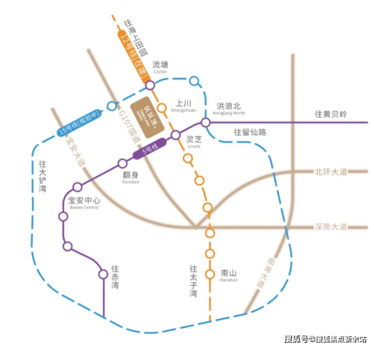 家门口三地铁畅通全城,项目周边目前已开通地铁5号线,周边规划有12号线(在建)上川站离项目仅400m、15号线流塘站(在建)离项目仅700m。地铁12号线预计将于明年年底建成通车,并与15号“超级黄金线”在流塘站交汇,