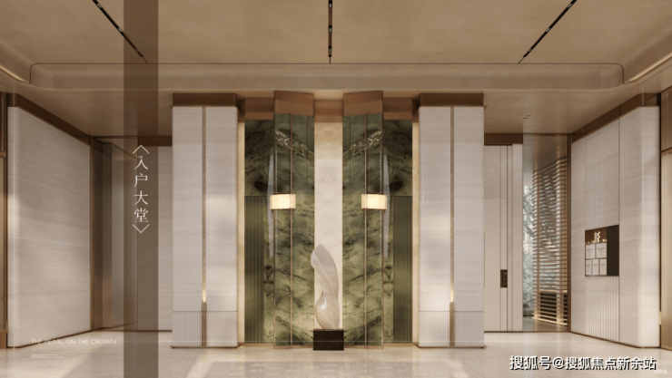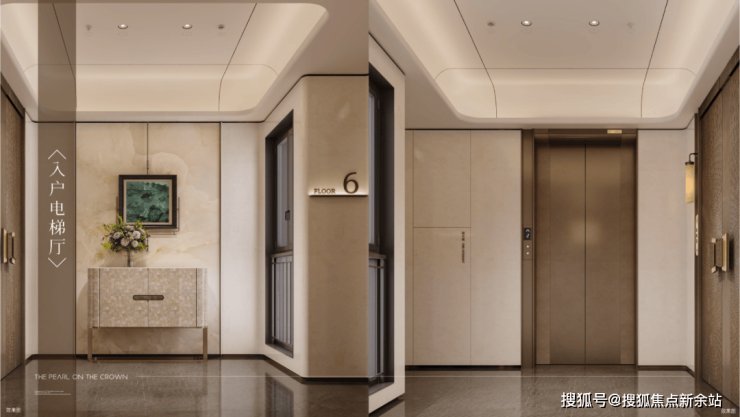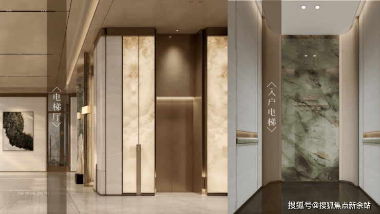 小区大堂延续酒店式高定设计,入户空间则升级了全明私梯设计。