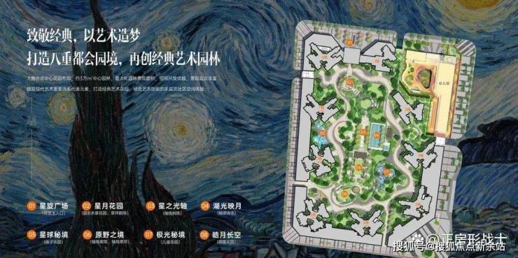 约4.79万平方米的辽阔疆域上,约2.9万平方米舒居艺术园林以围合式布局铺陈延展,最大约161米的超阔楼距构筑通透视觉通廊。纯板式建筑群以二梯二户的尊崇配置巍然屹立,铝板与玻璃幕墙交织的流线型外立面折射天际光华,3.15米层高营造穹顶之下的尺度盛宴。入户大堂铺陈天然大理石地坪,雕花石材墙面以艺术纹理诉说归家礼仪,八重都会园境循梵高《星月夜》的笔触,将星空花园、全龄双泳池、亲子乐园等全维度功能纳入生活日常。