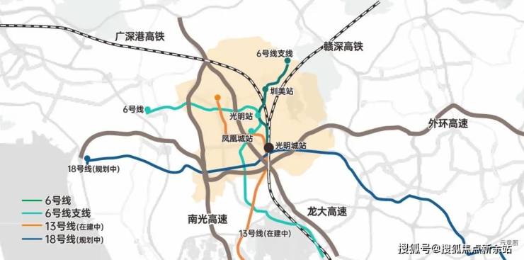 直线距离约1km内汇聚6号线支线圳美站、光明站双地铁站点,可换乘地铁13号线(在建中),约5km直达高铁光明城站,近享龙大高速、南光高速双交通动脉,畅享大湾区1小时生活圈
