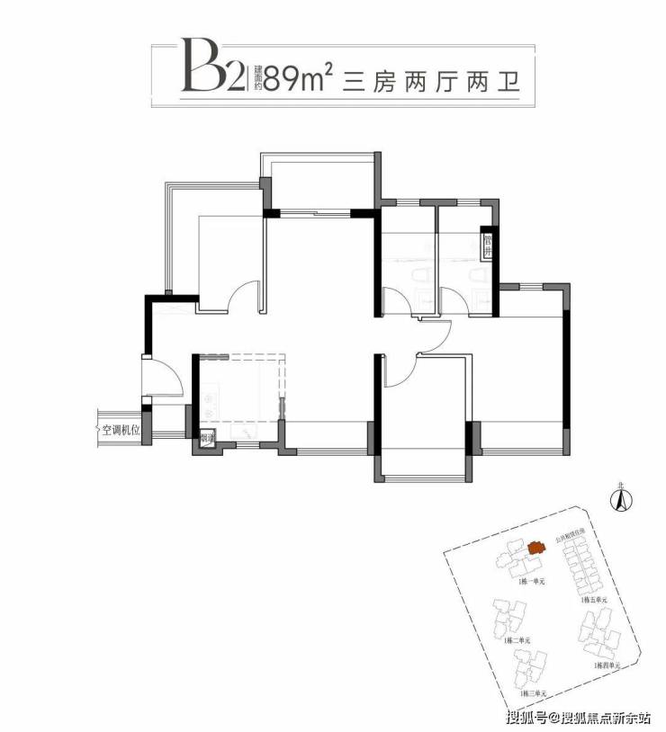 二:建面约89平方B1B2户型三房两厅两卫