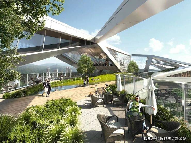 塔楼错落犹如山石,裙楼动感的轮廓如同群山间大鹏的巢穴,空中连接各塔楼的150米天际花园及顶层会所,以起伏的轮廓和动感的屋顶,模拟大鹏展翅,共同构成了一幅“南鹏立万丈山展翅而发”的画卷,寓意片区的辉煌发展。