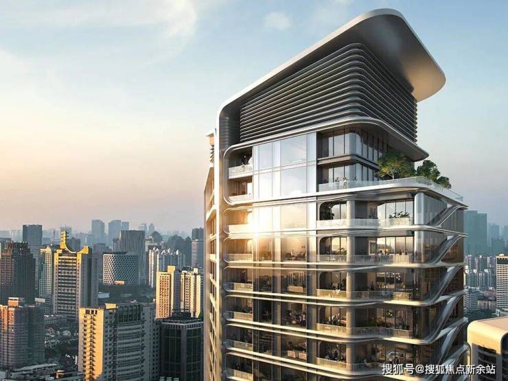 服务式公寓塔楼的弧形阳台立面以云朵为设计灵感,简约的轮廓搭配银白色铝饰面,突显出典雅的几何之美。