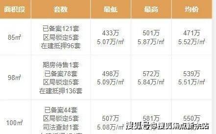 推售产品:85-98-100㎡3房(使用率约80%)