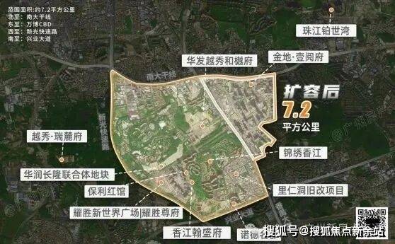 长隆-万博超级CBD核芯,唯一12席典藏人居 2023年4月,番禺区正式宣布:长隆-万博商务区正式扩容。包含万博、汉溪长隆以及里仁洞板块扩容近5倍,并被以“广州南CBD”名义向全球推介!万博扩容后,从原来约1.5平方公里扩至约7.2平方公里,超越珠江新城(约6.2平方公里),成就“文商旅居产”综合型商圈!