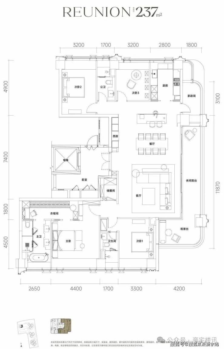 项目规划4栋住宅+1栋幼儿园,合计261套,今年首推户数仅42户,建面约197-237㎡四房大平层革新户型,层高3.3米,梯户比2梯2户,精装修交付,住宅环境纯粹。