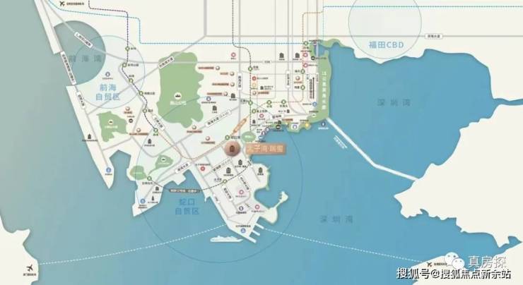 区域内部规划有多条的地铁汇聚,分别是:目前正在通车的2号线的蛇口港站,赤湾站所在的5号线,以及建设中的12号线太子湾站,距离项目最近的地铁站,直线距离约200米。