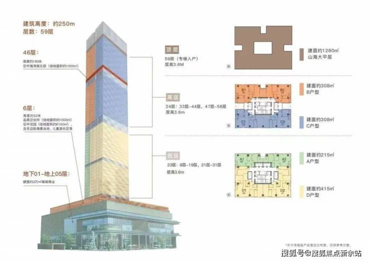 ◎建筑总层数:地下01-地上05层为商业、地上08-59层为品质公寓