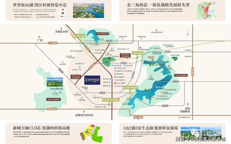 项目拥有一山双湖三景区鲜氧环绕,屹立于“大岭山森林风景区、同沙生态风景区、松山湖风景区”城市绿肺金三角中芯。近揽大岭山森林生态,93.6公顷城芯绿肺;外揽40平方公里同沙生态公园和22平方公里松山湖生态资源。依山伴水,藏纳福荫,城市与自然繁静共生。尽得一城丰盛之享。同时,项目则址环水而居,依山伴水,风水相望,藏纳福荫,是绝佳的风水宝地。