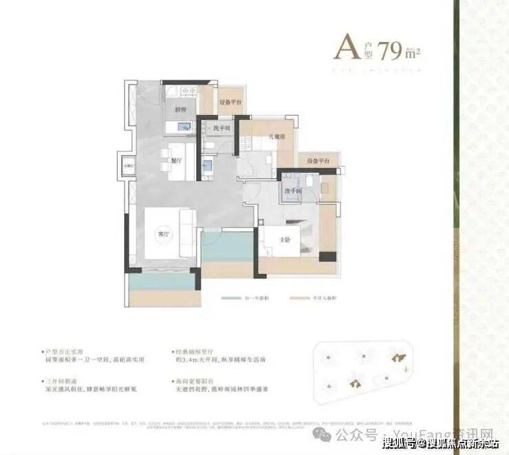 即将首发入市的是一期3栋、5栋的产品,大约368套,建面79㎡3房2厅2卫、约89㎡3房2厅2卫、约99㎡4房2厅2卫、约119㎡4房2厅2卫,共四种户型。
