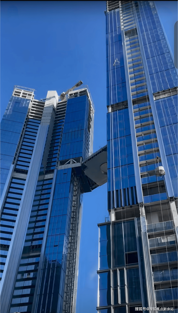 住宅33F(99.9米),两栋商业楼50/55F(238米),两者最近的间距仅不到14米(网上数据,被遮挡的同时还存在对视。