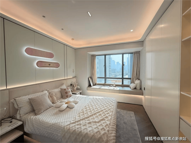 户型不算方正,侧出阳台,其中两个次卧对着开门,私密性一般,主卧套房设计,带步入式衣帽间。