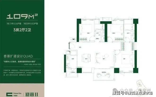【约109平三房两厅两卫户型】