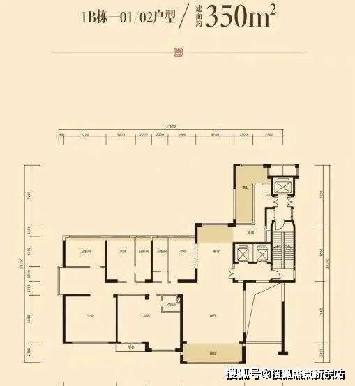 约350㎡的5+1房2厅6卫(1B栋01/02户型),本项目的至尊楼王