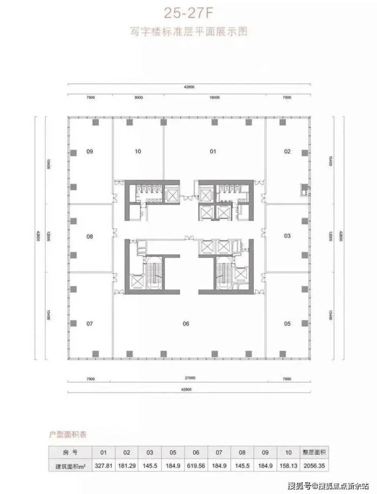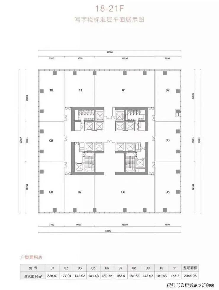 面积:500㎡起售,整层2100㎡,整层11个产权单位