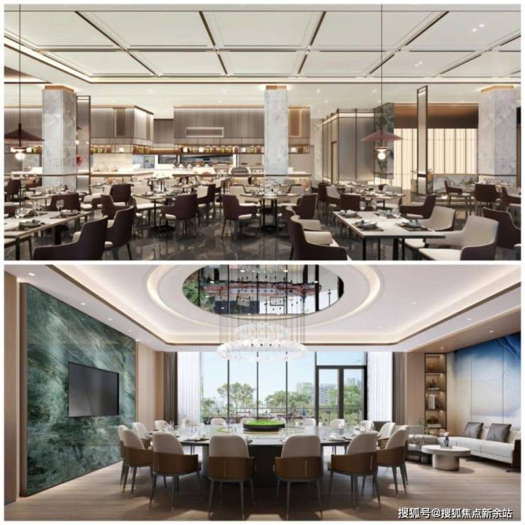 多元餐厅: 社交会客进阶空间承接多元会客功能,亲友接待、商务会谈、节日聚会等皆可,缤纷美味犒赏,延展志趣圈层的精质体验,提供多元社交场景。