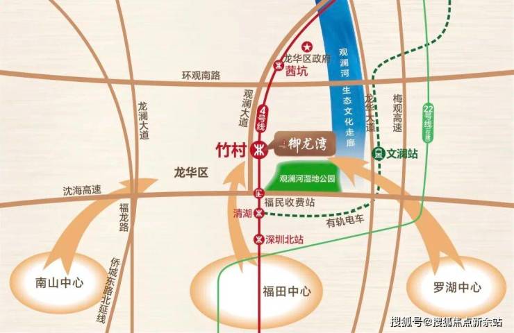 阳基御龙湾西园,位于龙华区福城街道观澜大道与翠幽路交汇处,下楼便是龙华4号线竹村站,是观澜方面进入龙华区的首站,交通区位相当优越。