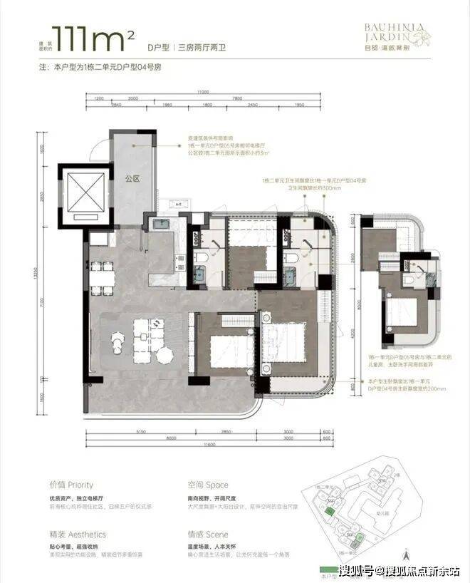 户型:新规设计、高使用率,规划主力为3-4房产品。