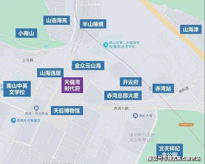 天健湾时代府位于招商街道赤湾片区赤湾六路与天后宫路交汇处以东,临近地铁2号线赤湾站。