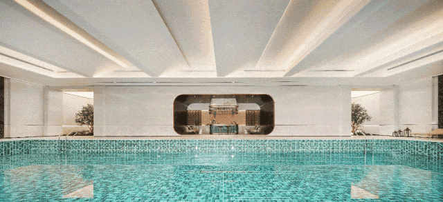 传统室外泳池冬天只能空置,但这里大冬天也能畅游,并配行政酒吧,放松完还能喝着小酒微醺。
