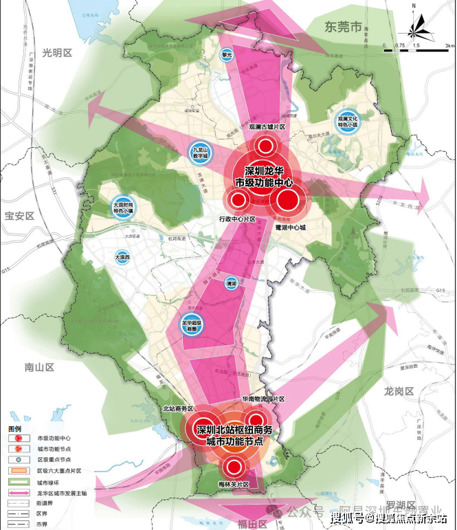 最新深圳国土规划中,龙华南部纳入都市核心区范围,龙华北部规划打造龙华中心,未来形成南北“双中心"发展格局;观澜占位南北双中心格局中的龙华市级功能中心,以“新政+科技+文化+生活"为主体,打造引领新质生产力发展的深圳新一代中心区;
