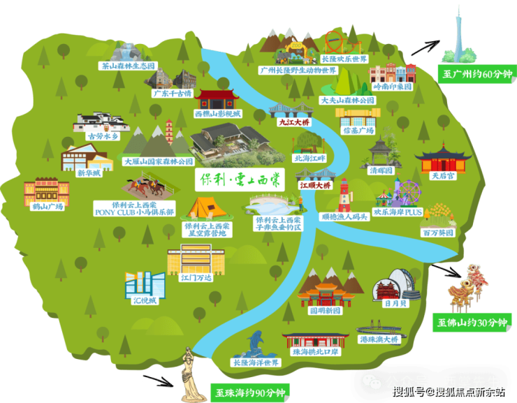 通过江顺大桥、九江大桥,约20min到达佛山信基广场;广佛江珠城轨(规划中),一站到佛山、5站到广州,融入30分钟广佛江珠生活圈,多元生活轻松享。