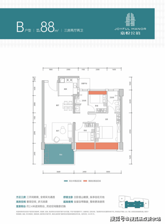 约88㎡实用三房,南向三开间设计,推窗即见阳光,让温暖成为家的底色。约 2.4 米进深阔景阳台,既是日光浴场,也是私域聚场,瑜伽、小聚皆可满足;全屋灵动飘窗可改造成观景茶座或阅读小角,承载多元精彩。