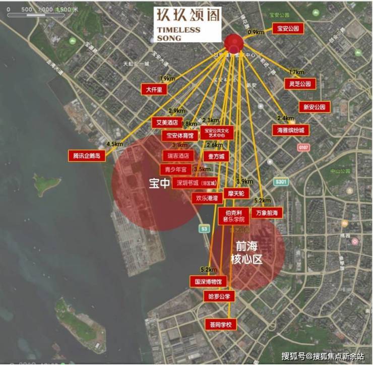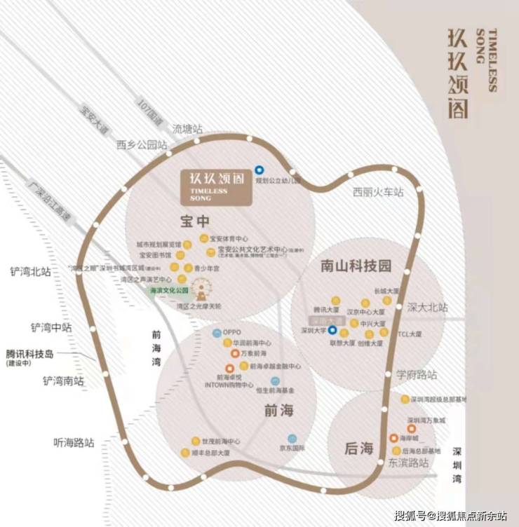 2km范围内悦享千亿大湾区会客厅配套:包括“湾区之光”地标摩天轮、欢乐海港、滨海文化公园、宝安体育场、图书馆、青少年宫、演艺中心等。