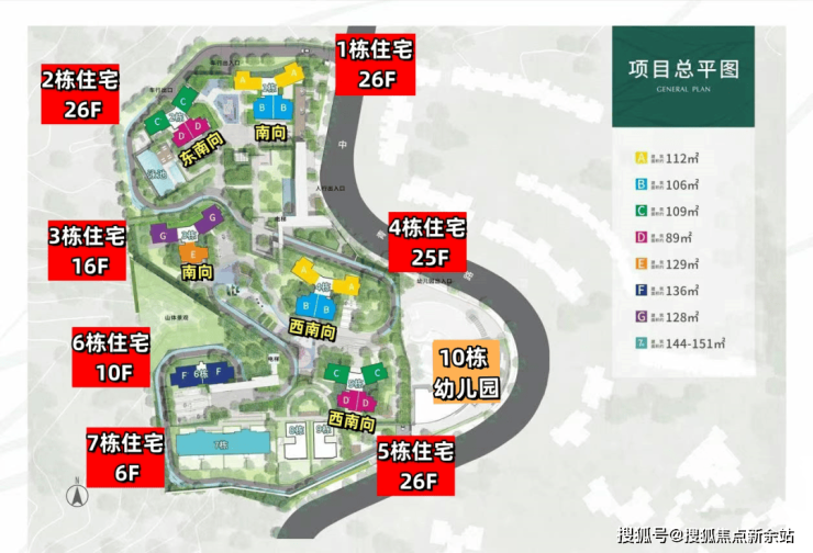 由10栋建筑组成,1-7栋为住宅,8、9栋为商业,10栋是建面3200㎡的幼儿园。
