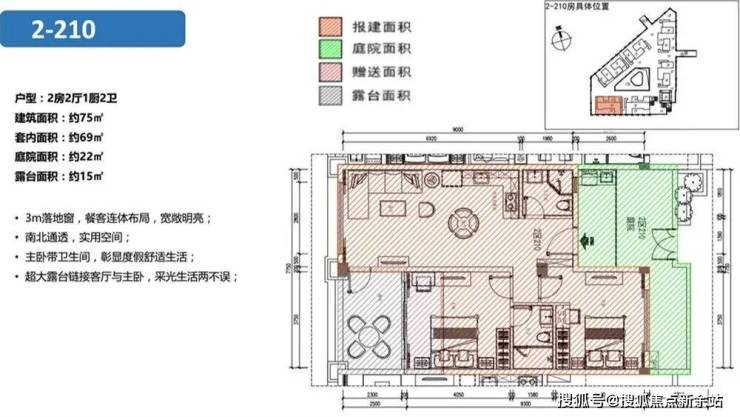 建面约70-75㎡两房
