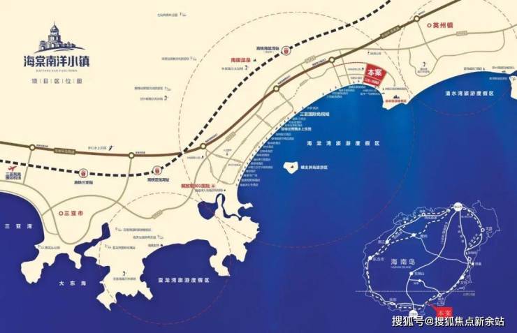 三正海棠南洋小镇距离海棠土福出口约2.5公里,约15分钟车程享海棠湾及清水湾两大湾区完善配套,半小时即享三亚城芯生活圈,约40分钟抵达三亚凤凰机场,交通便利,生活便捷,开启湾区度假新时代。