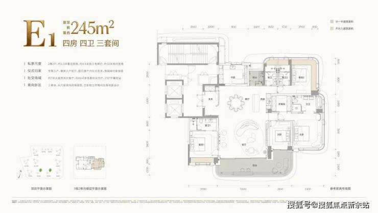 约245四房四卫(三套间)通透E1户型